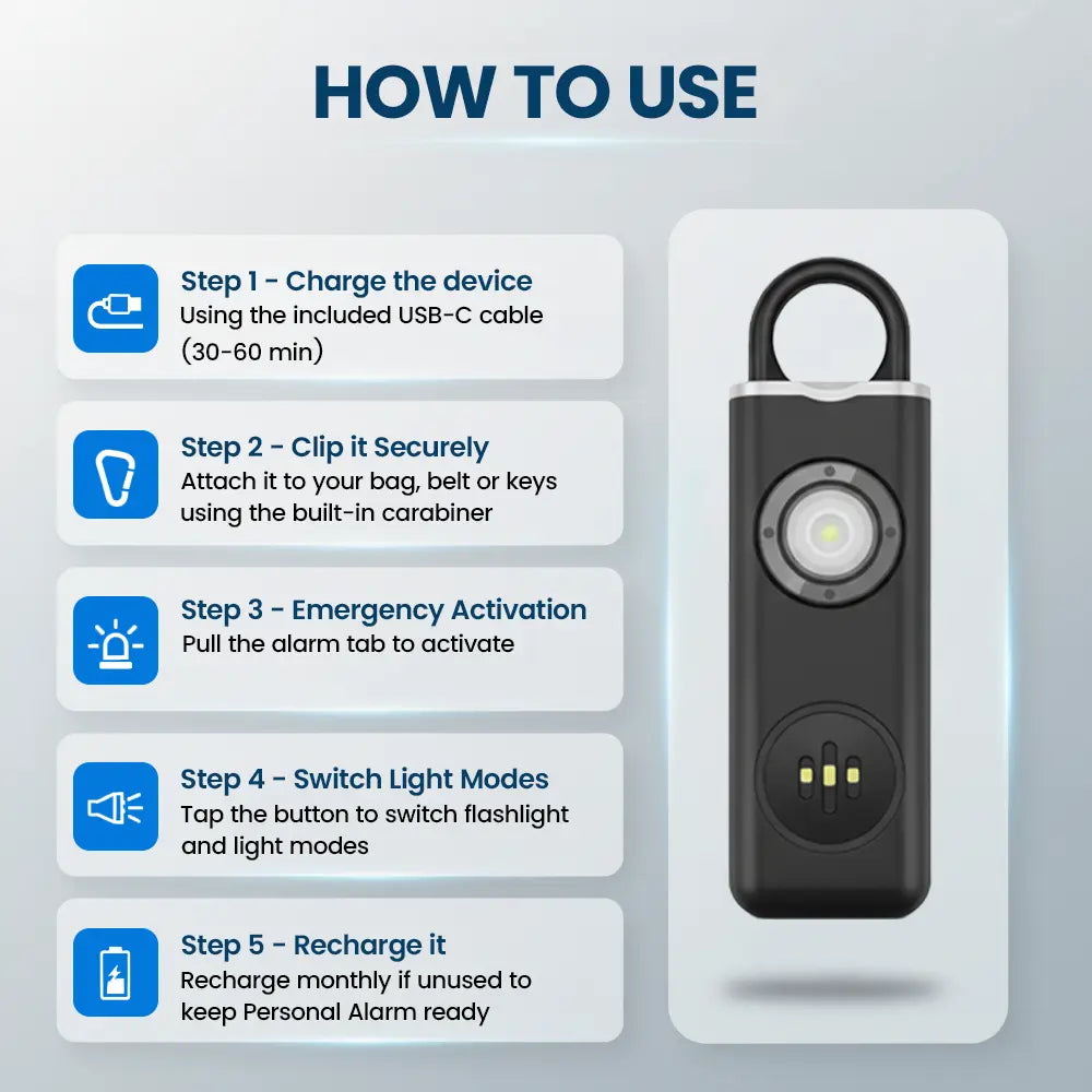 It offers a practical, no-training-needed way to protect yourself or loved ones. Whether navigating busy city streets, walking across campus, or creating a safer routine for your kids or parents, this alarm provides instant assistance in a compact, modern design. Reliable components and thoughtful engineering make it a smarter everyday safety option compared to pepper spray or outdated keychain alarms.
