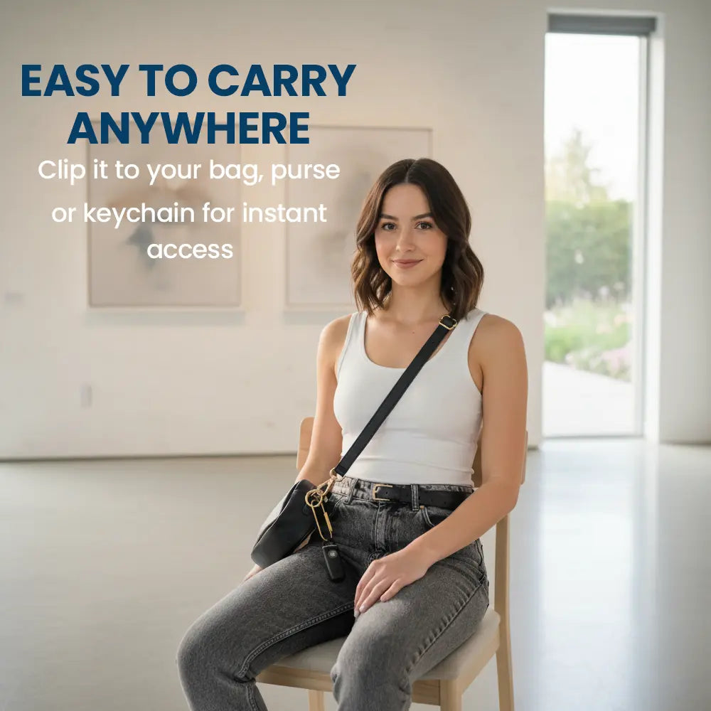 Clip & Carry – Attach it to your bag, keys, belt, or backpack so it’s always ready.